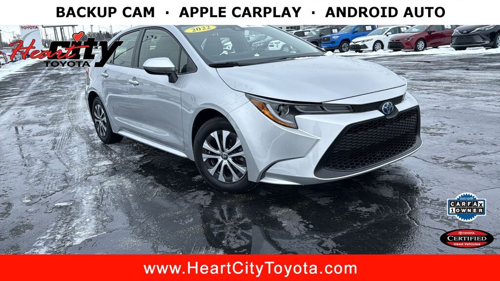 Toyota certified car for sale in Elkhart, IN. Heart City Toyota presents this certified 2022 Toyota Corolla for sale with the following factory-installed packages, including::, and All-weather Floor Liner Package (tms) (MSRP $249.00), which increased the original MSRP value by $249.00 for this certified 2022 Toyota Corolla Hybrid LE.