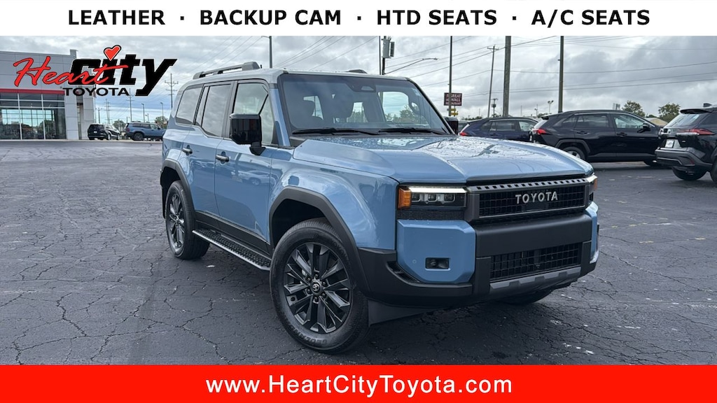 Toyota for sale in Elkhart, IN. Heart City Toyota presents this new 2025 Toyota Land Cruiser SUV for sale with the following factory-installed packages, including::Premium Package (MSRP $4,600.00), 20" X 7.5j Aluminum Wheels (MSRP $1,240.00), Stabilizer Disconnect Mechanism (MSRP $1,230.00), Paint Protection Film (MSRP $439.00), All Weather Cargo Mat (MSRP $130.00), Black Badge Overlay - Iforcemax (MSRP $65.00), Door Edge Guard (MSRP $160.00), Two Tone Roof (MSRP $350.00), Rear Bumper Guard (MSRP $230.00), and Liftgate Light (MSRP $195.00), increasing the total value by $8,639.00 for this new 2025 Toyota Land Cruiser.