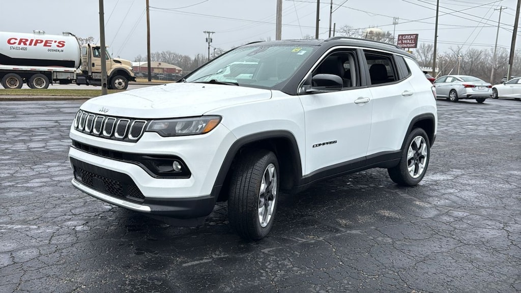 Used car for sale in Elkhart, IN. Heart City Toyota presents this used 2022 Jeep Compass for sale with the following factory-installed packages, including::, and Sun And Sound Group (MSRP $2,380.00), which increased the original MSRP value by $2,380.00 for this used 2022 Jeep Compass Limited 4x4.