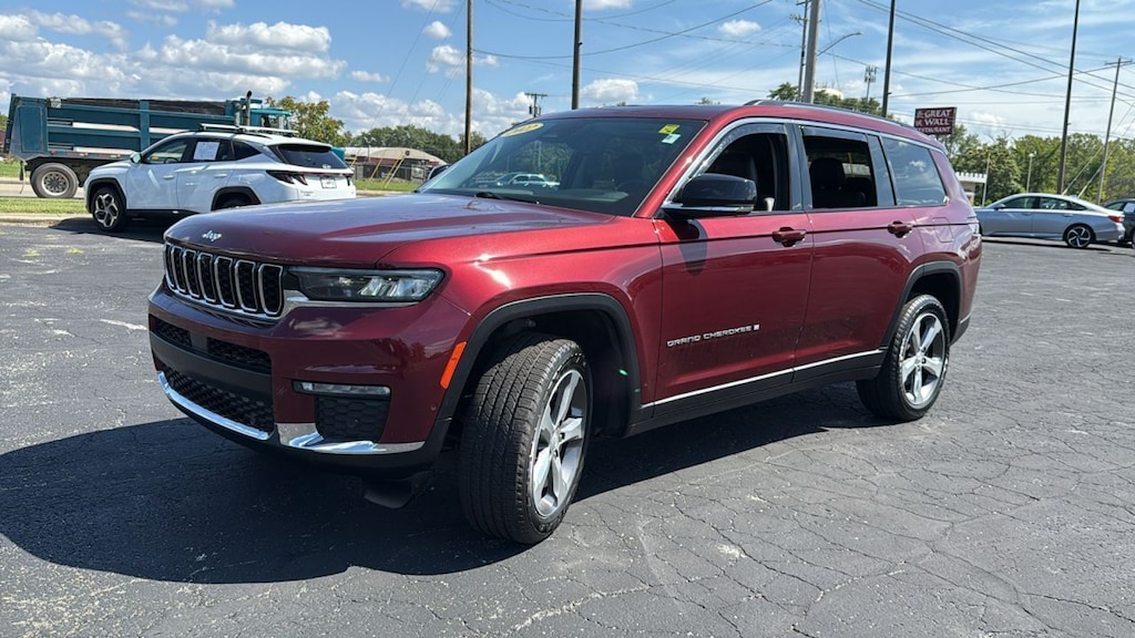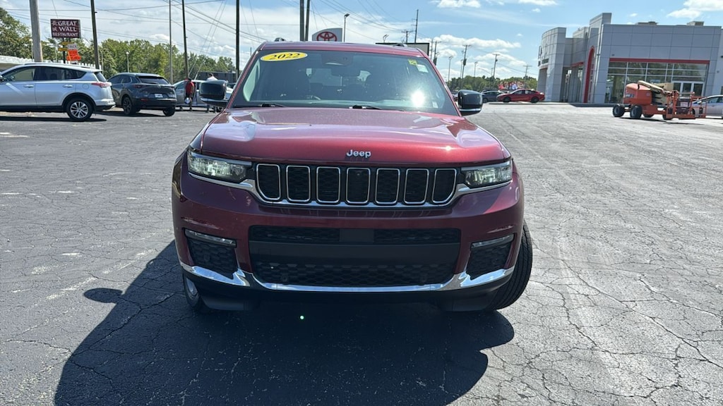 Used car for sale in Elkhart, IN. Heart City Toyota presents this used 2022 Jeep Grand Cherokee L for sale with the following factory-installed packages, including::Wheels: 20" X 8.5" Polished/painted Aluminum (MSRP $1,645.00), Velvet Red Pearlcoat (MSRP $395.00), Luxury Tech Group Ii (MSRP $2,295.00), Dual Pane Panoramic Sunroof (MSRP $1,935.00), 2nd Row 60/40 Bench W/manual Tip/slide (MSRP $750.00), and Luxury Tech Group Ii (MSRP $2,295.00), which increased the original MSRP value by $9,315.00 for this used 2022 Jeep Grand Cherokee L Limited 4x4.