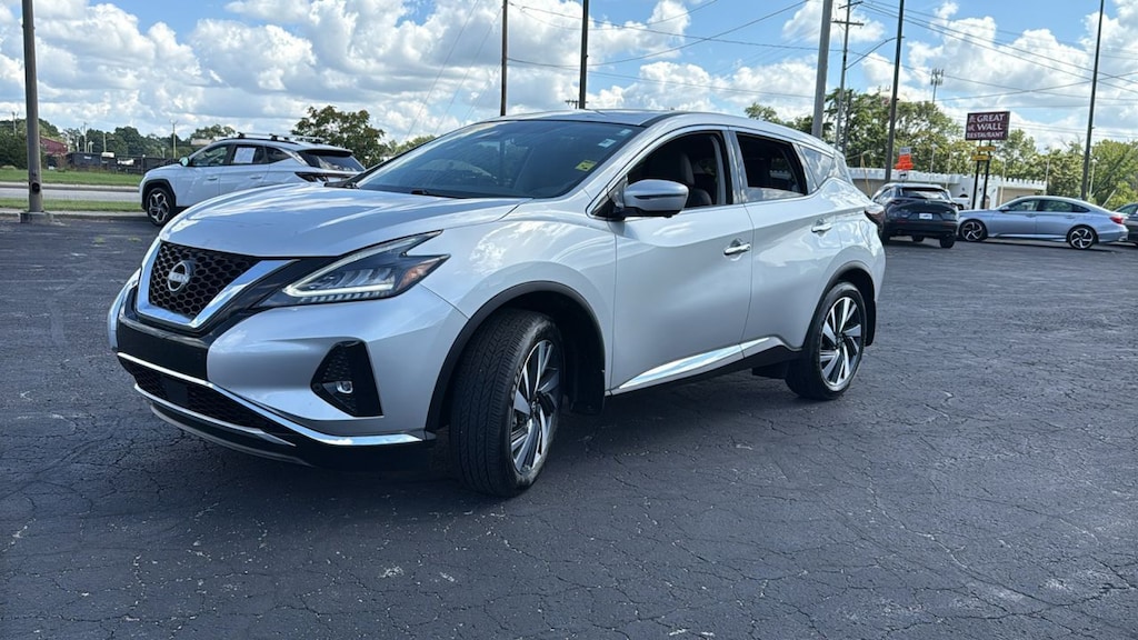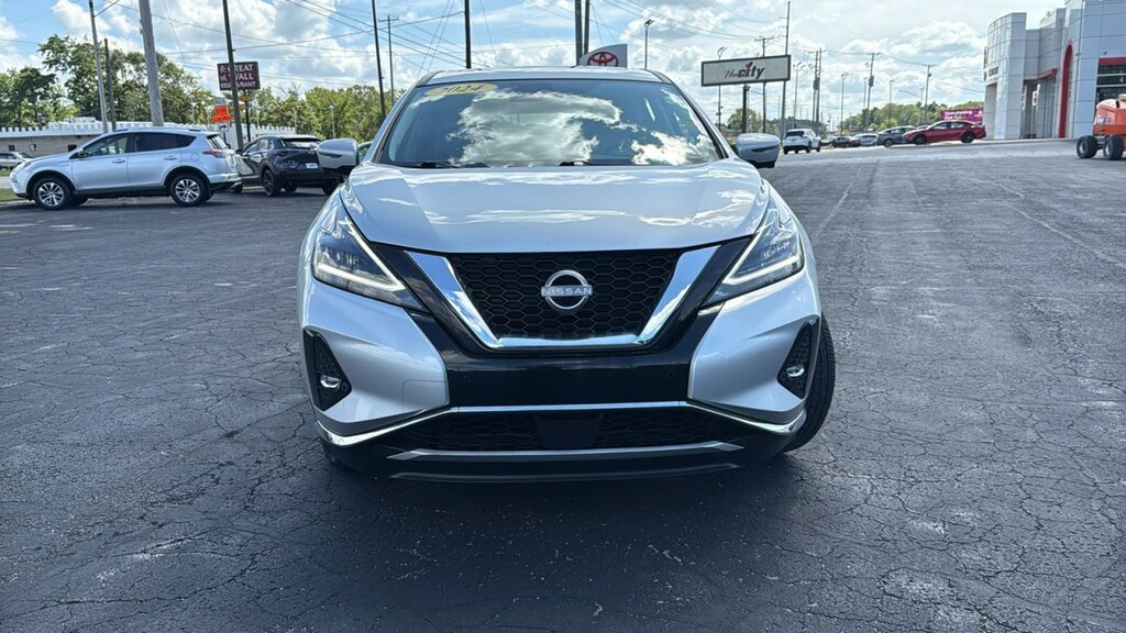Used car for sale in Elkhart, IN. Heart City Toyota presents this used 2024 Nissan Murano for sale with the following factory-installed packages, including::Illuminated Kick Plates (MSRP $400.00), Splash Guards (MSRP $250.00), Rear Bumper Protector (MSRP $180.00), Nissan Usb Charging Cable Set (MSRP $90.00), and Carpeted Floor Mats And Carpeted Cargo Mat (MSRP $355.00), which increased the original MSRP value by $1,275.00 for this used 2024 Nissan Murano SL Intelligent AWD.