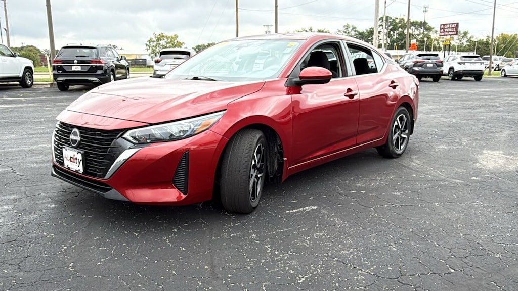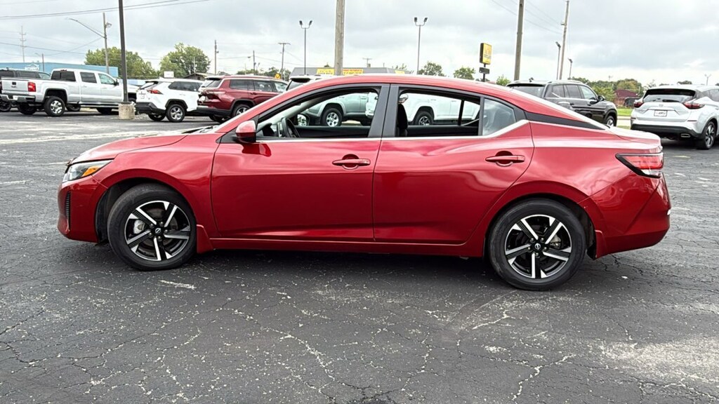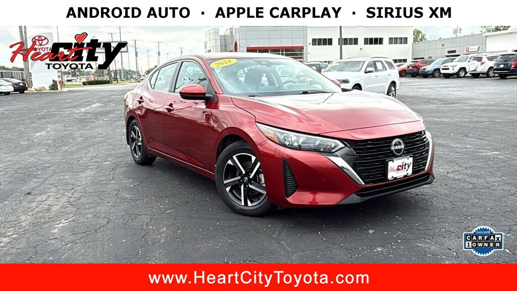 Used car for sale in Elkhart, IN. Heart City Toyota presents this used 2024 Nissan Sentra for sale with the following factory-installed packages, including::Carpeted Floor Mats With Trunk Mat (MSRP $280.00), Trunk Package (MSRP $120.00), Special Paint - Scarlet Ember Tintcoat (MSRP $425.00), Body Colored Splash Guards (4-piece) (MSRP $245.00), Clear Rear Bumper Protector (MSRP $75.00), and Door Sill Plates (MSRP $90.00), which increased the original MSRP value by $1,235.00 for this used 2024 Nissan Sentra SV Xtronic CVT.